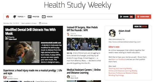 A newspaper by Adam Atodl - updated weekly with a curated selection of articles, blog posts, videos and photos relating to health education. Read and subscribe free at: http://paper.li/f-1327779598
